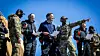 On the gangway of NoCGV Svalbard: Norway's Prime Minister Jonas Gahr Støre, Minister of Foreign Affairs Espen Barth Eide, Minister of Defense Tore O. Sandvik (all from the Labor Party), the Chief of the Norwegian Joint Headquarters, Vice Admiral Rune Andersen, NATO Secretary General Mark Rutte and the Chief of the Norwegian Intelligence Service, Vice Admiral Nils-Andreas Stensønes.